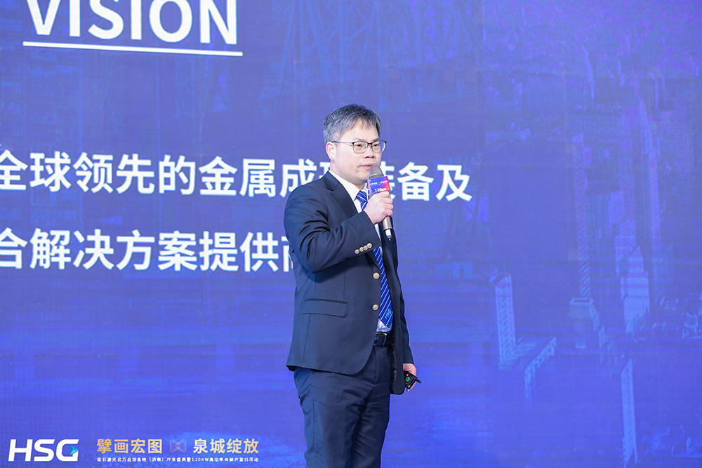 在盛典的重要環(huán)節(jié)之一,山東省裝備制造業(yè)協(xié)會(huì)副秘書長(zhǎng)王群發(fā)表重要致辭,對(duì)宏石激光選擇落戶濟(jì)南表示熱烈祝賀。他指出,裝備制造業(yè)是“制造強(qiáng)國(guó)”的基石,也是山東省經(jīng)濟(jì)發(fā)展的戰(zhàn)略支柱。在當(dāng)前產(chǎn)業(yè)轉(zhuǎn)型升級(jí)的關(guān)鍵時(shí)期,宏石激光扎根濟(jì)南,不僅為山東裝備制造業(yè)注入了新的活力,也彰顯了企業(yè)在智能制造領(lǐng)域的前瞻視野和戰(zhàn)略布局,具體表示:“宏石激光選擇濟(jì)南,是對(duì)山東裝備制造業(yè)發(fā)展環(huán)境和市場(chǎng)潛力的高度認(rèn)可,更是對(duì)行業(yè)未來發(fā)展的有力支持。協(xié)會(huì)將一如既往地為包括宏石激光在內(nèi)的企業(yè)提供優(yōu)質(zhì)服務(wù),優(yōu)化產(chǎn)業(yè)生態(tài),攜手推動(dòng)山東裝備制造業(yè)邁向更高質(zhì)量發(fā)展。”