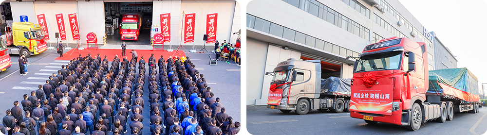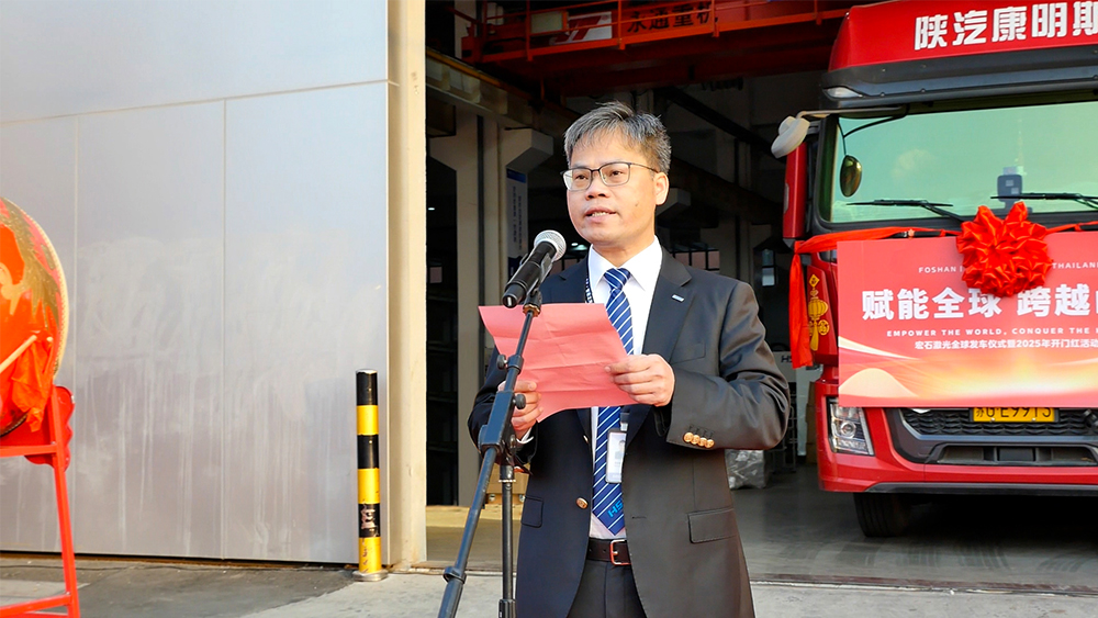 活動主會場設在佛山總部,整裝待發(fā)的運輸車輛整齊列陣,伴隨著激昂的音樂聲,禮炮齊鳴,發(fā)運車一馬當先,新一年的奮進激情被點燃。與此同時,蘇州、濟南及泰國基地同步舉行發(fā)車儀式,集中交付多批暢銷設備,展示了宏石激光強大的生產制造與高效交付能力,也全方位展現(xiàn)出公司穩(wěn)健運營、逆勢增長的良好態(tài)勢。