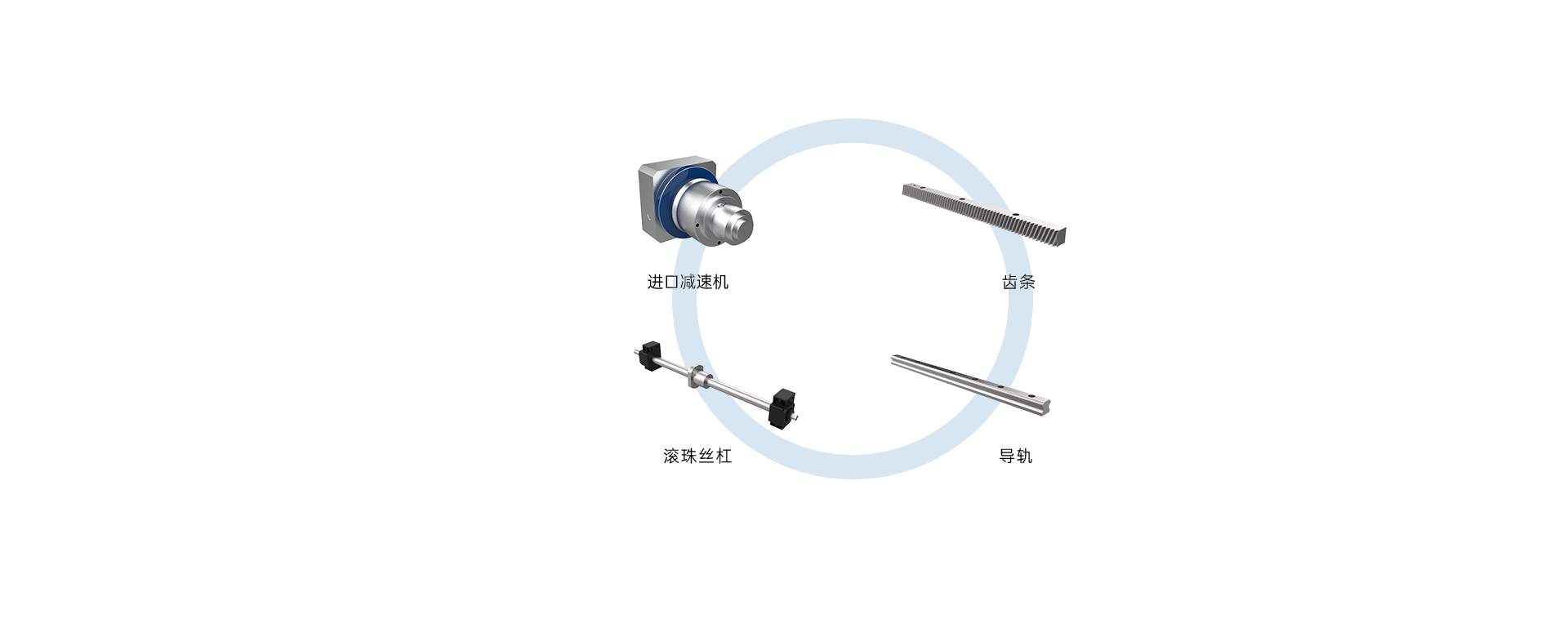 甄選進口減速機、高精密齒條、導軌、
