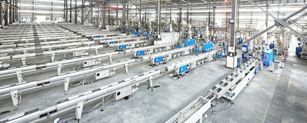 近日聯塑機器順利交付長達70多米的實壁管擠出生產線,這是聯塑機器在拉美地區銷售的第一條2米HDPE實壁管擠出線。眼前這條可擠出2米直徑HDPE實壁管的生產線,是聯塑機器的得意之作。目前鮮少塑機企業能夠實現特大口徑HDPE管材生產裝備制造。